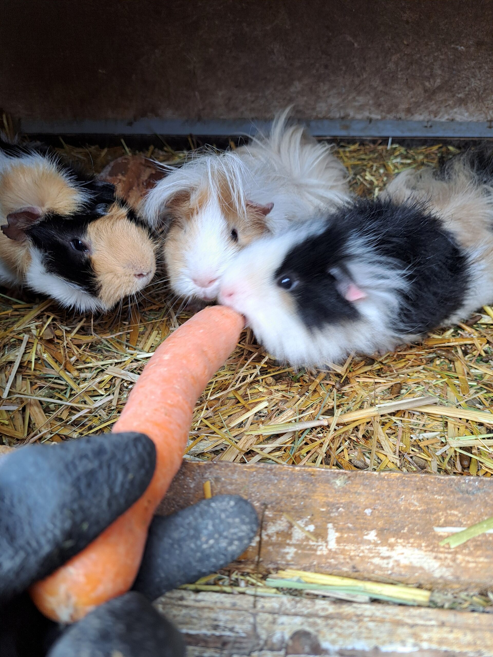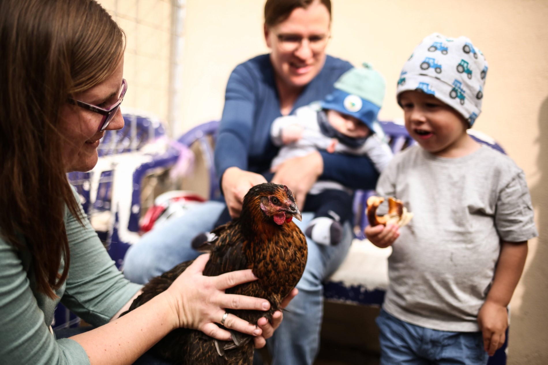 Auf dem Brühlhof leben viele große und kleine Tiere. Wer ihnen mit Achtung und Respekt begegnet, wird schnell Freundschaften schließen. Unser Hofhund Leika fährt sehr gerne mit dem Leiterwagen spazieren. Klopfer und seine Hasenbande, sowie Meerschweinchen mümmeln Gras in ihrem Gehege, sie sind kuschelig weich wenn man sie streichelt. Reges Treiben lässt sich auch im Hühnerstall beobachten, und bei dem vielen Gegacker wird von Ella, Waltraud, Elisa, Wilma,… unter Aufsicht von Hahn Günther so manches Ei gelegt. Süß und kuschelig sind auch unsere Kätzchen, wenn sie im Stroh herumtapsen und uns mit ihren großen Knopfaugen anschauen. Wenn sie genug gespielt haben, bekommen sie ihre Milch von der Katzenmammi.
